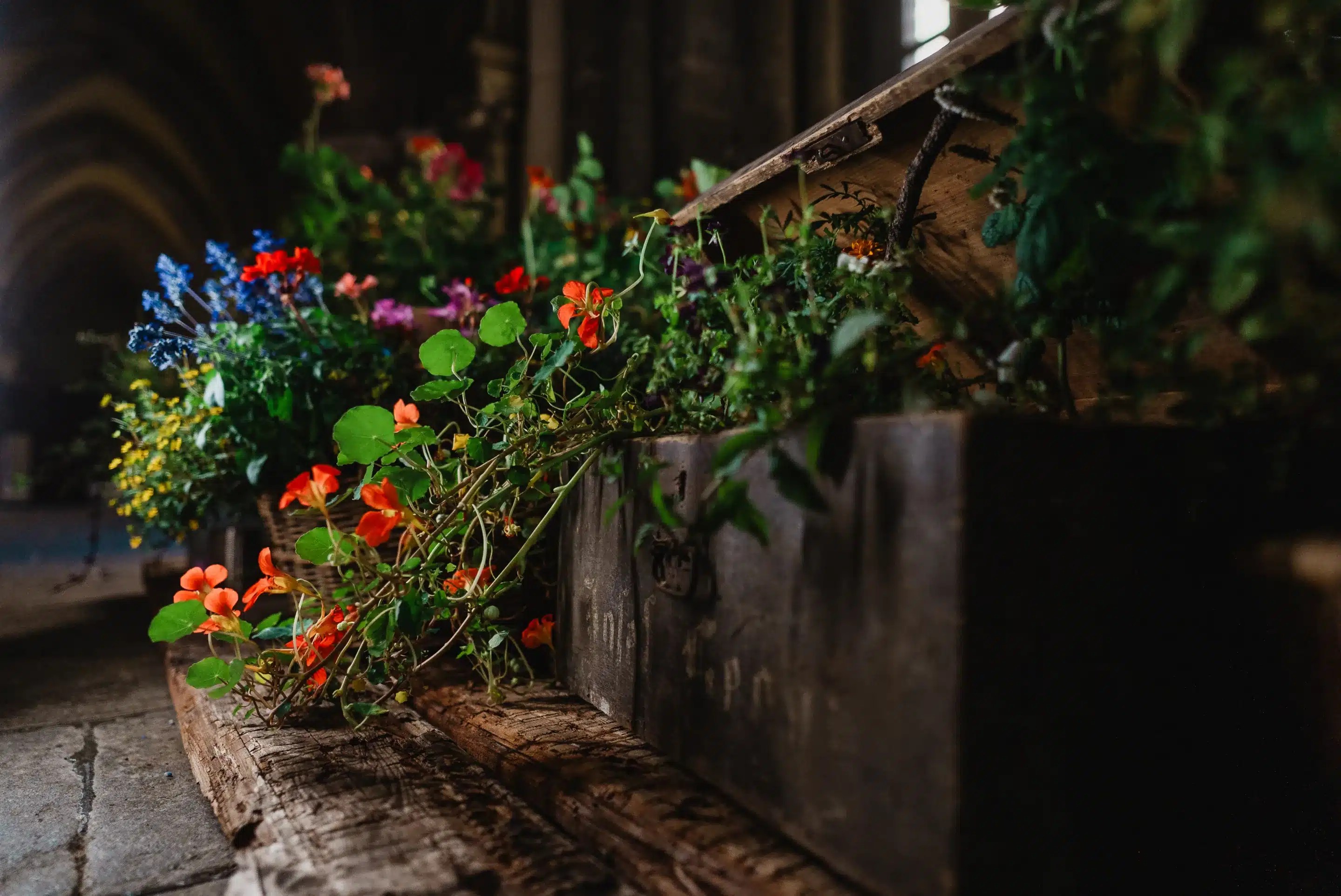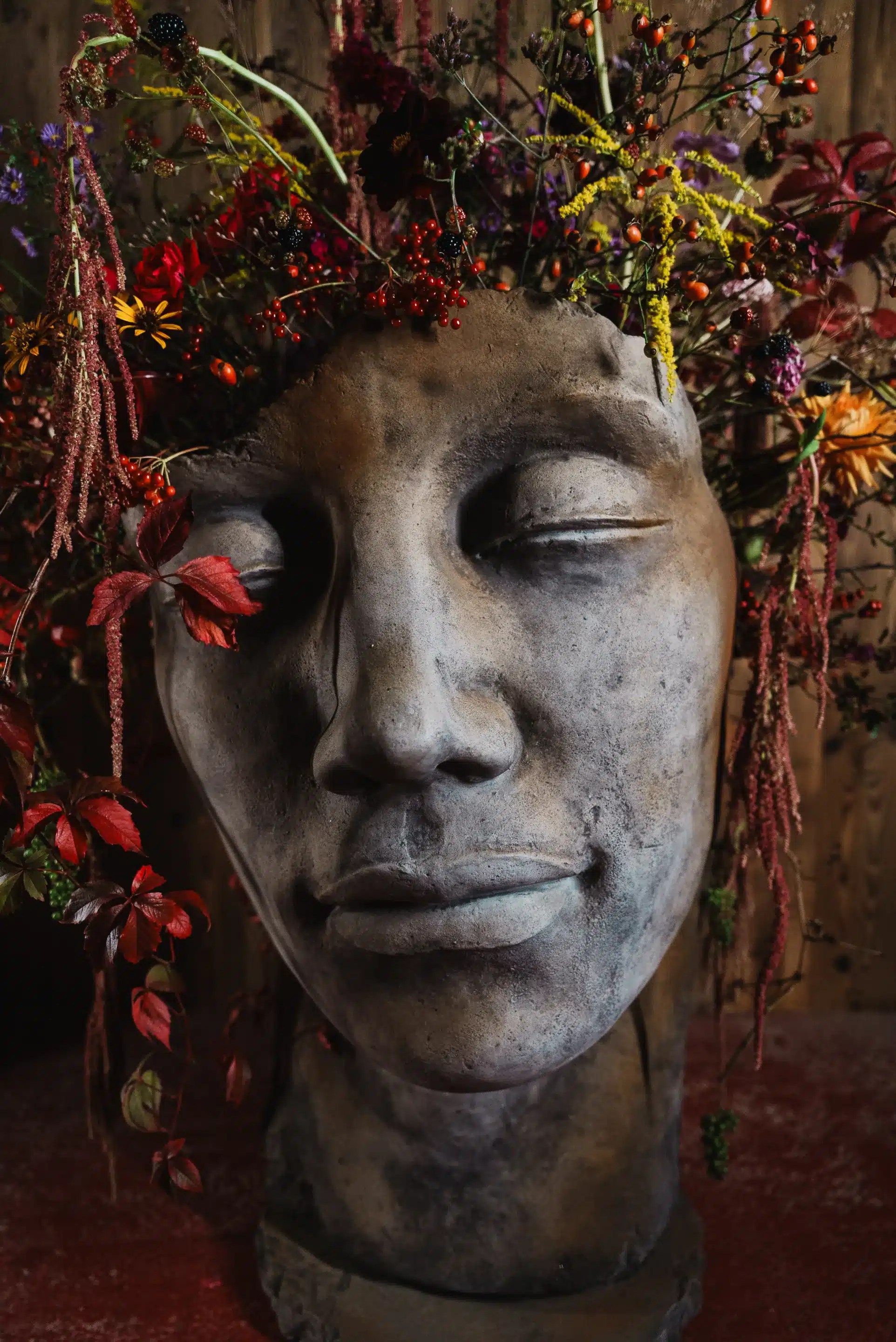 In dieser Pieta-Schale, die in ihren Ausmaßen und ihrer ästhetischen Gestaltung an die Werke der Renaissance erinnert, wird die Ruhe und Schönheit der berühmten Pieta von Michelangelo hervorgehoben. Die 1800 getrockneten Strohblumen, die die Schale schmücken, symbolisieren die Vergänglichkeit des Lebens und erinnern an die Flüchtigkeit der menschlichen Existenz.